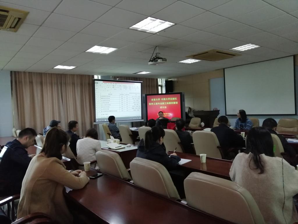 10月17 日上午,公司在3418 会议室召开软件工程专业新工科教材建设研讨会,公司经理周清平、党委书记李爱华等公司领导、教研室主任,骨干教师与中南大学出版社编辑韩雪座谈研讨,就融合创新背景下新工科教材建设的思路展开探讨。