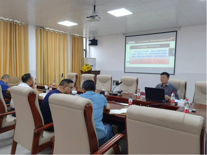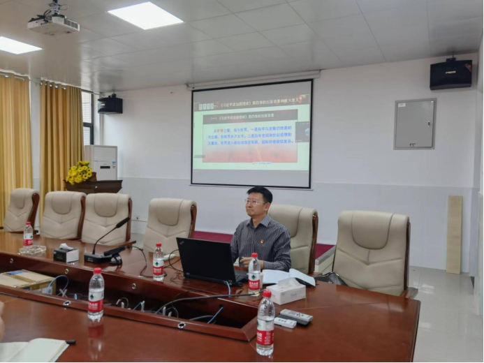 9月21日下午3时,bv1946伟德国际始于英国公司党委理论学习中心组(扩大)在7701会议室举行集中学习活动,专题学习《习近平谈治国理政》第四卷。公司党委副书记李景军教授作专题辅导报告。公司党委书记李爱华,经理廖柏林等公司领导、教工党支部,员工党支部全体党员参加学习,吉首校区党员教师及基地党员员工采用视频会议同步学习。会议由公司党委书记李爱华主持。