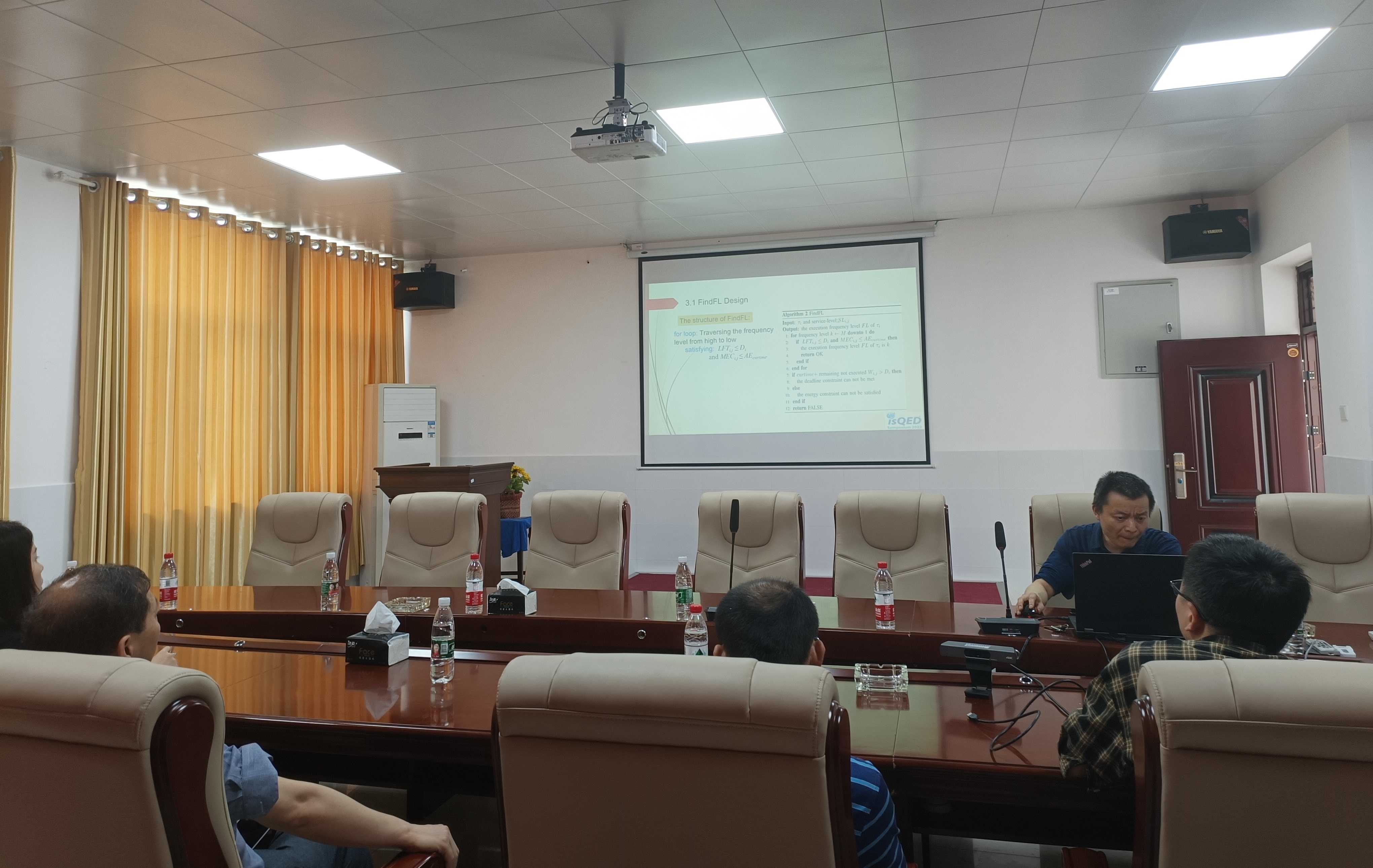 会议室开展了学术沙龙活动,徐洪智博士作了《能量收集系统中非周期任务调度》的报告。之后,专业教师对该问题进行了研讨。