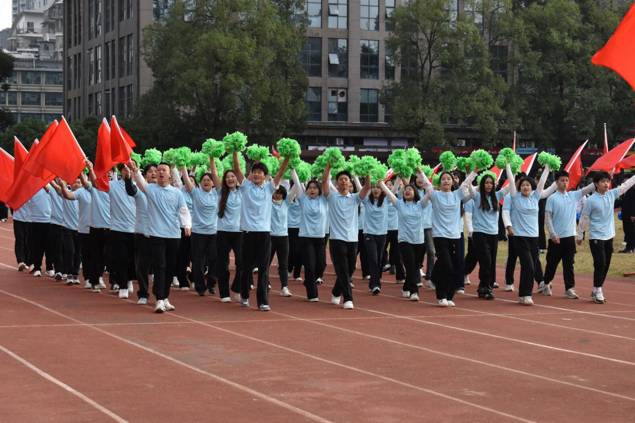 当晨光洒满运动场,当口号响彻校园上空,10月23日上午,bv1946伟德国际始于英国第四十三届田径运动会在砂子坳校区田径场精彩开幕。