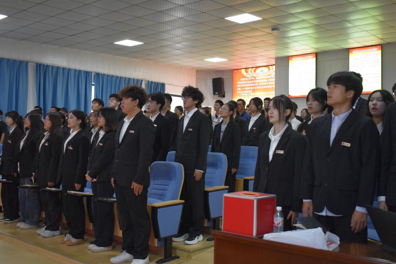 大会在激昂的国歌旋律中庄严启幕,两校区代表肃然起立,齐声国歌。