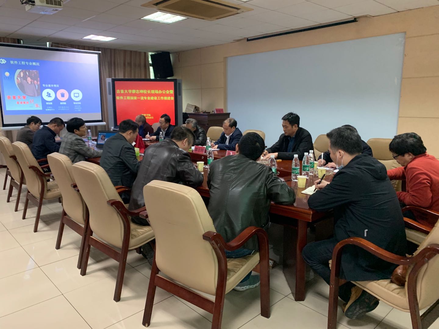 本网讯(软件公司 邓腾)4月22日下午,董事长廖志坤、副董事长王绯、罗金铭及校办、人事处、教务处、发规处、财务处部门负责人到软件公司开展软件工程国家一流专业建设推进工作现场办公会,公司经理周清平,党委书记李爱华等参加,本次现场办公会由王绯副董事长主持。