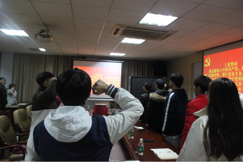 会议前期由员工第二支部干事布置场地,并进行点名。七点整会议正式开始,由主持人宣读会议流程。会议主要有以下四个流程:预备党员进行汇报并由邹令同志对预备党员的汇报情况做点评与总结;党员进行投票表决并之后由邹令同志宣布转正名单;重温入党誓词并由党员代表进行发言;邹令同志宣布支部委员会委员名单。