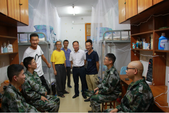 新生军训指导员王喜元向各寝室新生介绍了公司领导及班主任老师。李爱华书记对加入软件公司大家庭的2019级新生表示热烈的欢迎。他表示同学们能相聚在这里便是一种缘分,希望同学们能够好好珍惜同学情,平时相互协助,在军训期间及员工生活上有什么困难及时寻求班主任及学工办老师的帮助,由于军训期间正值天气炎热,李书记希望大家不留长发,以免感冒。